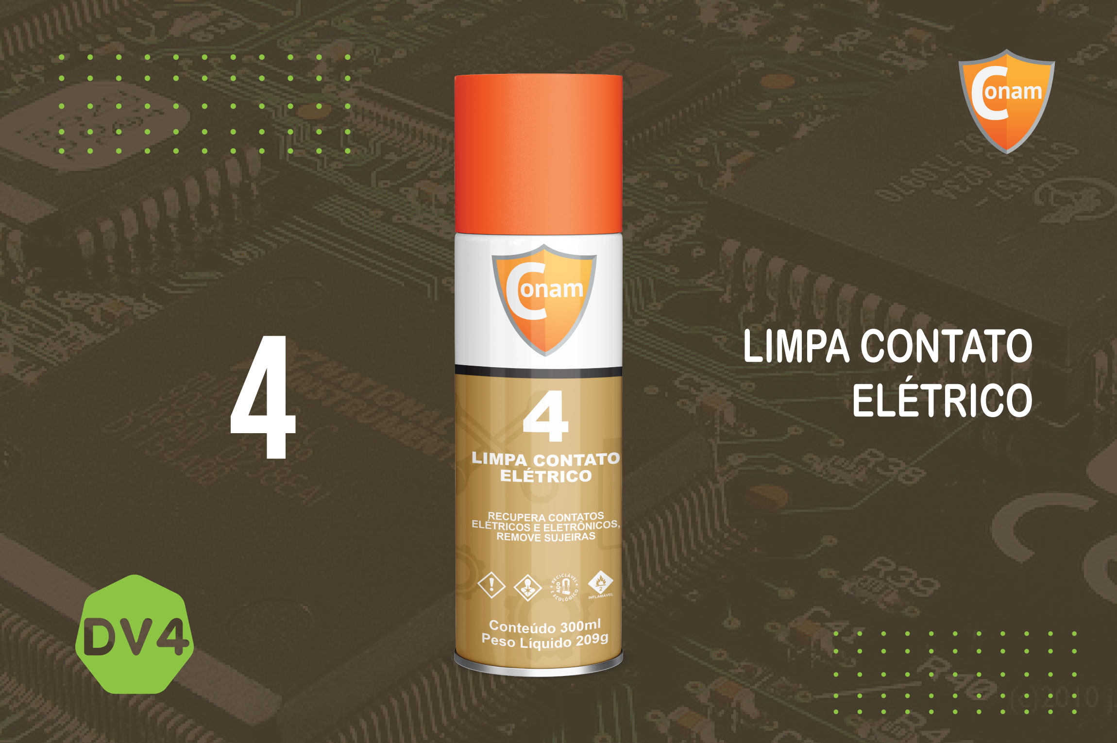 Produto desenvolvido para limpeza e restauração de continuidade elétrica em todos os tipos de contatos e mecanismos, com grande economia, visto não necessitar, na maioria dos casos, de desmontagem dos equipamentos. Possui baixa tensão superficial e alto poder de umectação, sendo o produto ideal para remoção de óleo, graxas, fluxo de soldas, agente corrosivos, poeira e outros materiais de difícil remoção pelos métodos convencionais de limpeza.
